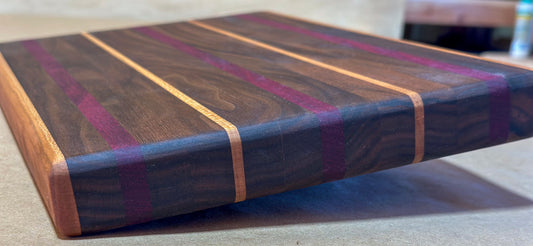 Cutting Board - Walnut with touches of Cherry, Purple Heart & Maple (1 5/16 x 10 x 15 1/4)